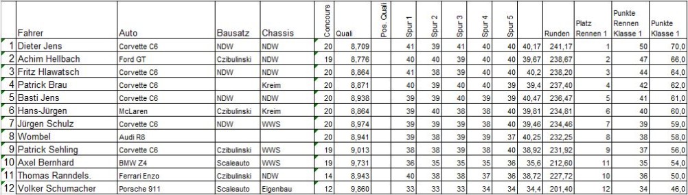 Achim, Fritz, Patrick und Basti belegten die nächsten Plätze, alle nur durch 2 Runden getrennt. Das war ganz schön spannend und knapp! Auch die andere Startgruppe glänzte durch überlegte und schnelle Fahrweise, Abflüge auf der schnellen und mit gutem Grip versehenen Bahn waren eher die Ausnahme.